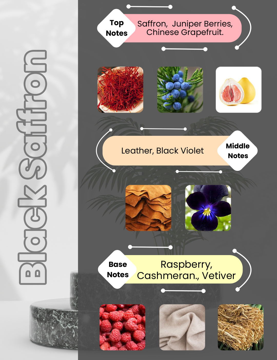 Black Saffron by Byredo is a Oriental Spicy fragrance for women and men. Black Saffron was launched in 2012. Top notes are Saffron, Juniper Berries and Chinese Grapefruit; middle notes are Leather and Black Violet; base notes are Raspberry, Cashmeran and Vetiver.