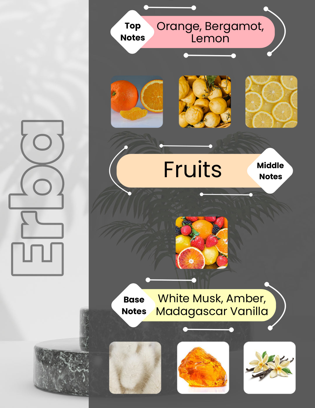 Erba Pura by Sospiro Perfumes is a Oriental fragrance for women and men. Erba Pura was launched in 2013. Erba Pura was created by Christian Carbonnel and Laura Santander. Top notes are Orange, Bergamot and Lemon; middle note is Fruits; base notes are White Musk, Amber and Madagascar Vanilla.