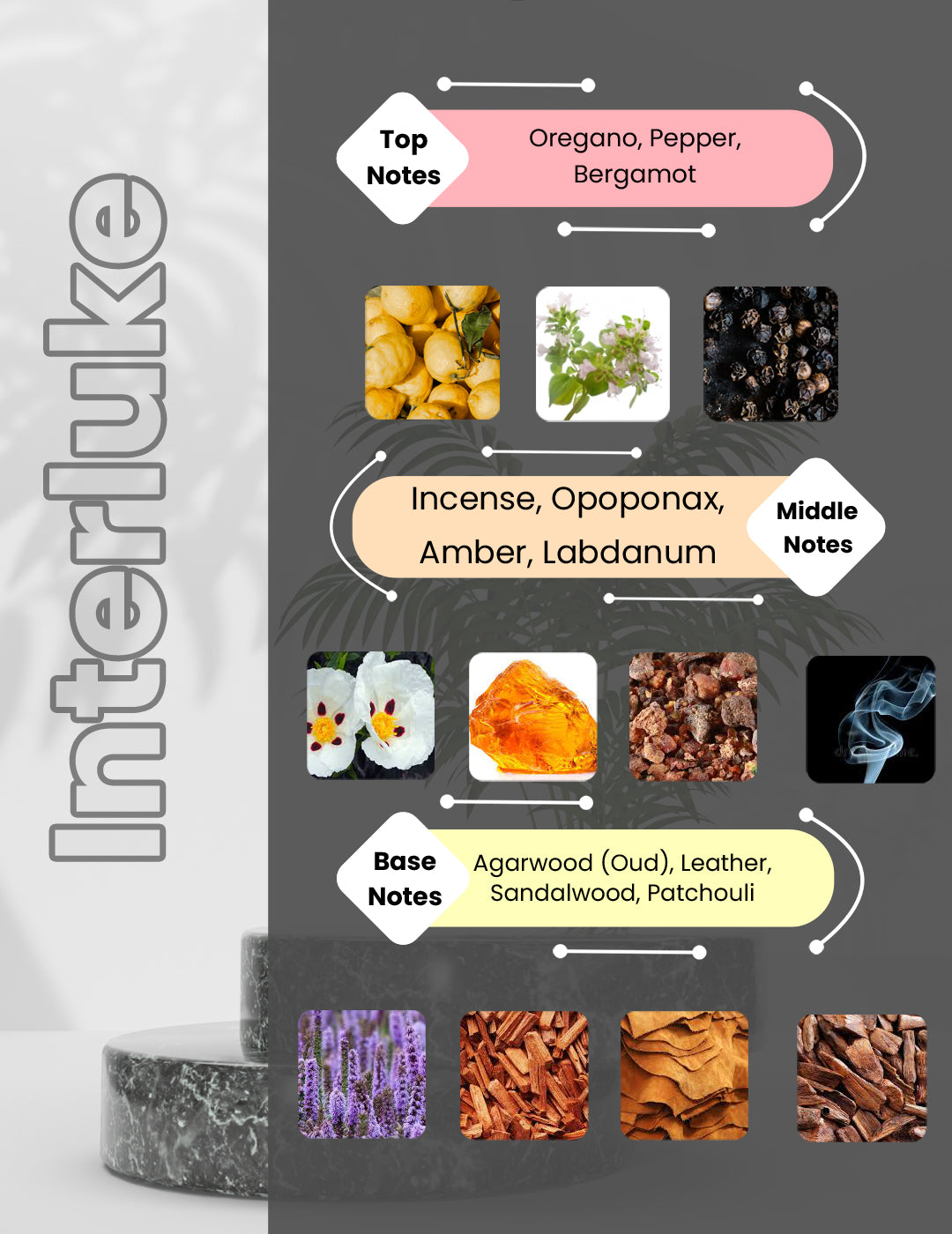 Interlude Man by Amouage is a Oriental Woody fragrance for men. Interlude Man was launched in 2012. The nose behind this fragrance is Pierre Negrin. Top notes are Oregano, Pepper and Bergamot; middle notes are Incense, Opoponax, Amber and Labdanum; base notes are Agarwood (Oud), Leather, Sandalwood and Patchouli.