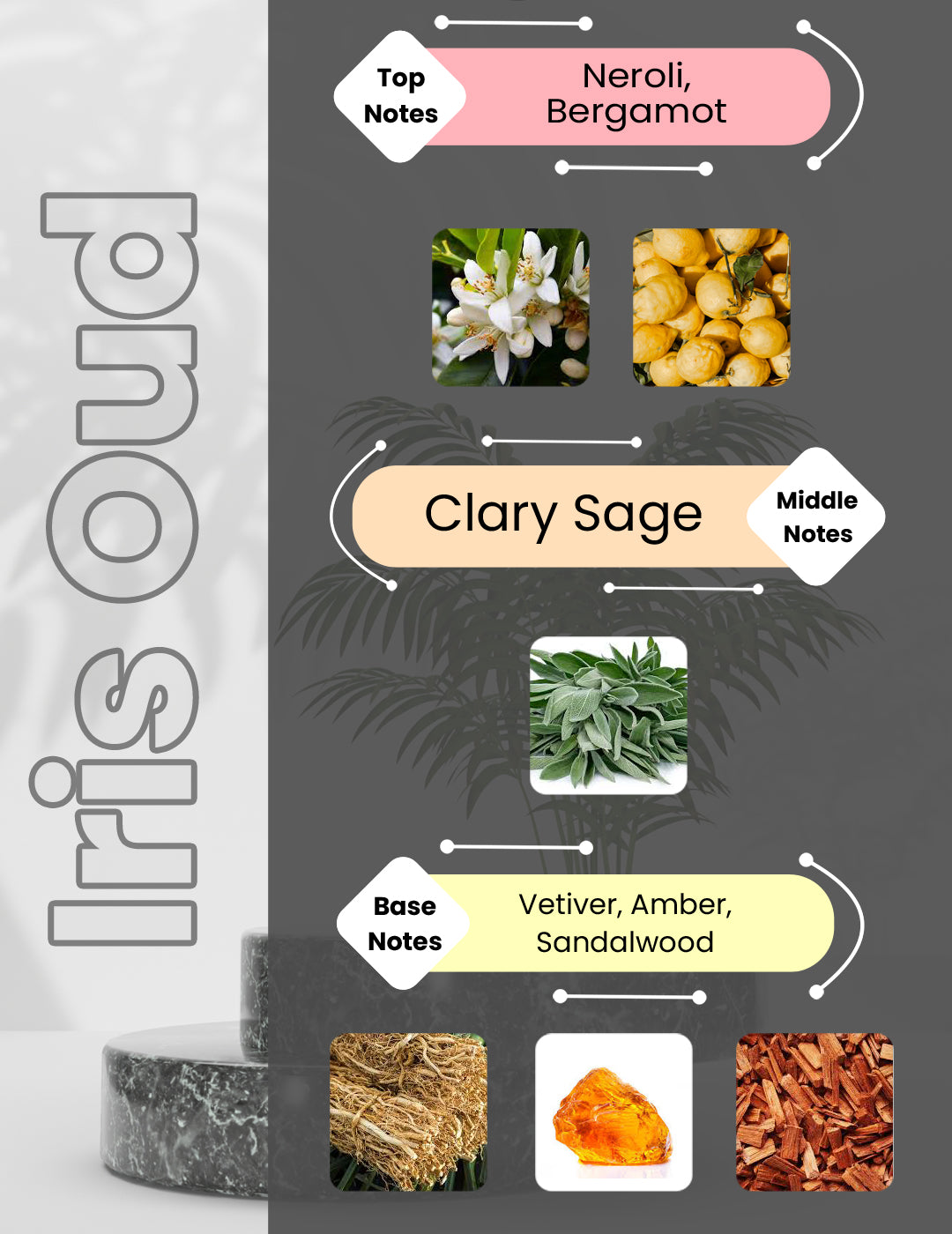 Iris Oud by Luxodor is a Woody Aromatic fragrance for women and men. Iris Oud was launched in 2020. Top notes are Neroli and Bergamot; middle note is Clary Sage; base notes are Vetiver, Amber and Sandalwood.