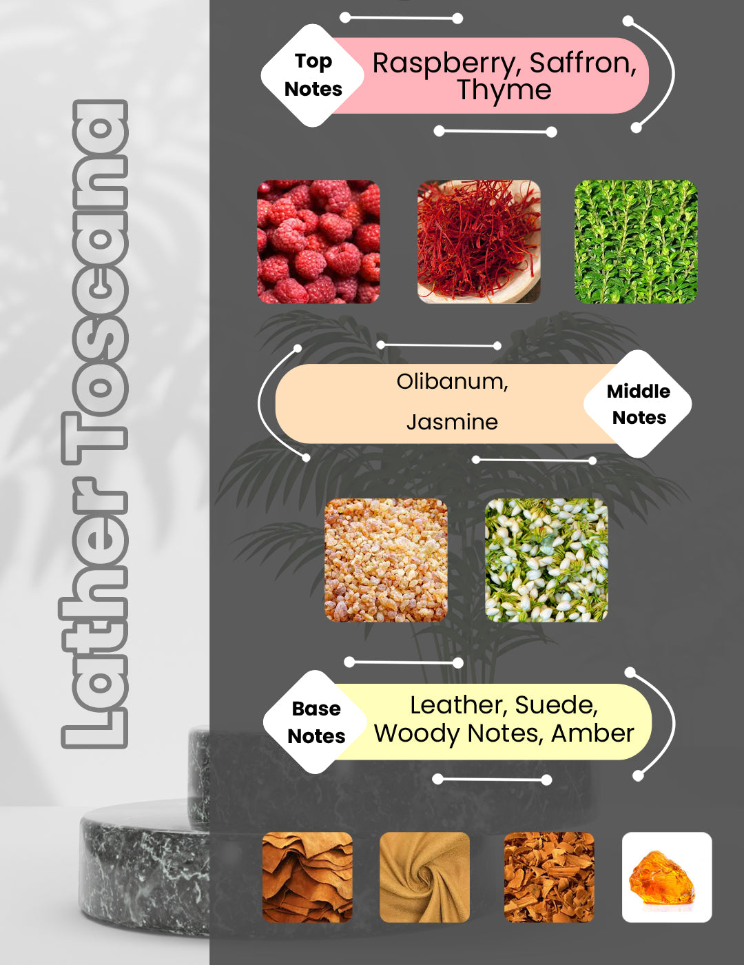 Tuscan Leather by Tom Ford is a Leather fragrance for women and men. Tuscan Leather was launched in 2007. Top notes are Raspberry, Saffron and Thyme; middle notes are Olibanum and Jasmine; base notes are Leather, Suede, Woody Notes and Amber.