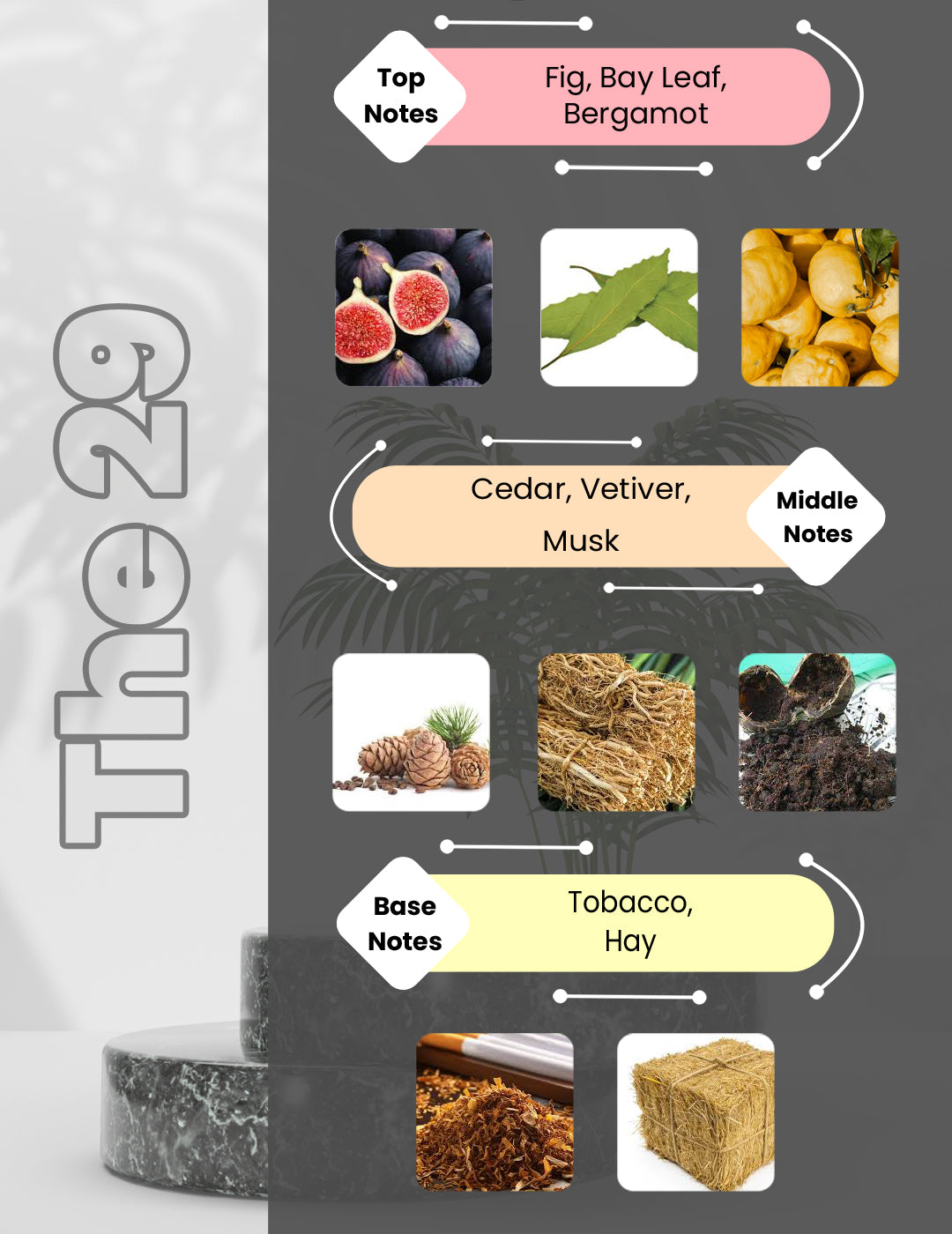 The Noir 29 by Le Labo is a Aromatic fragrance for women and men. The Noir 29 was launched in 2015. The nose behind this fragrance is Frank Voelkl. Top notes are Fig, Bay Leaf and Bergamot; middle notes are Cedar, Vetiver and Musk; base notes are Tobacco and Hay.